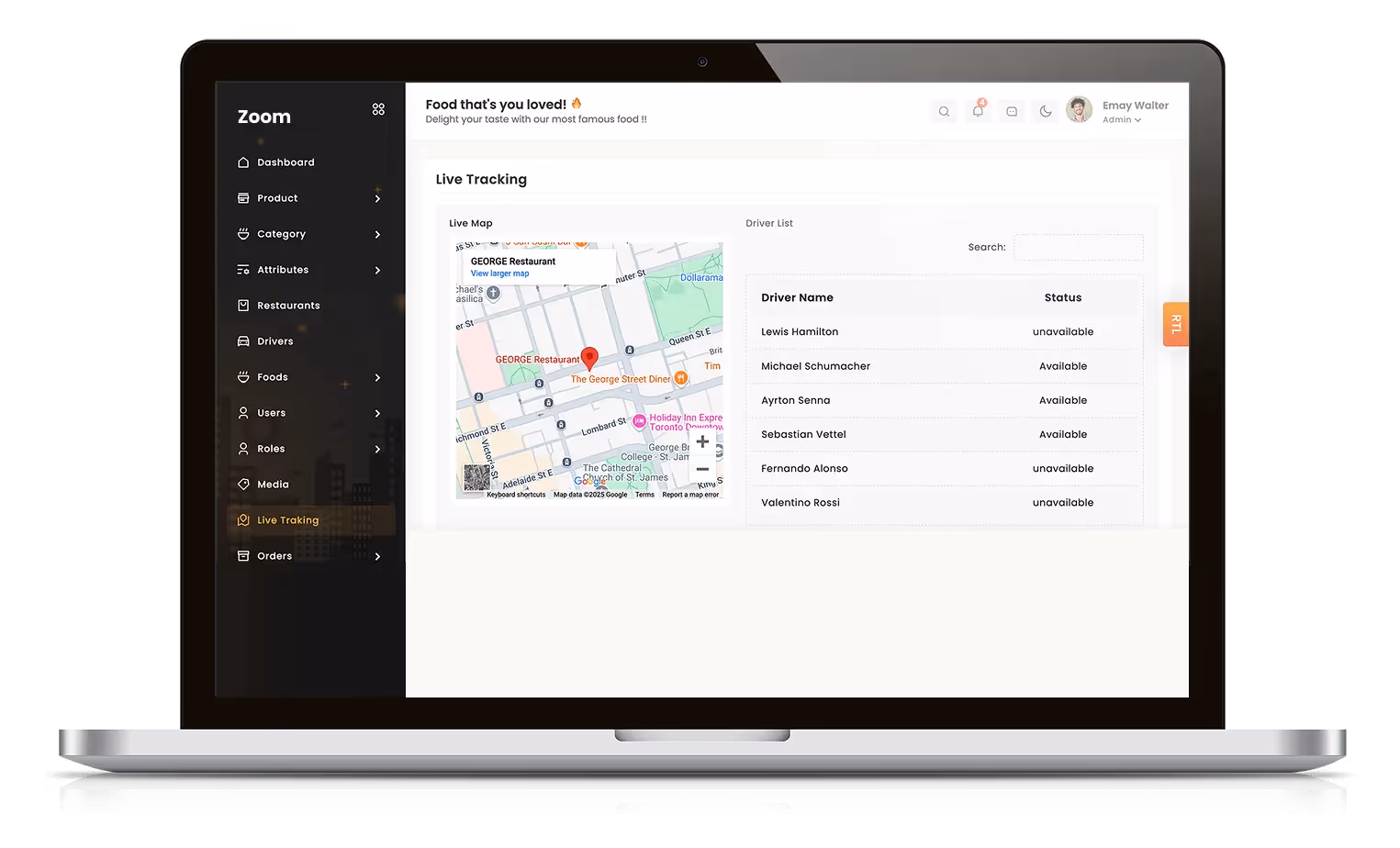توفر لوحة التحكم الإدارية لوحة معلومات قوية وسهلة الاستخدام للإشراف على عمليات التوصيل وإدارتها وتحسينها بكفاءة، مما يضمن خدمة سلسة لكل من العملاء ومندوبي التوصيل.