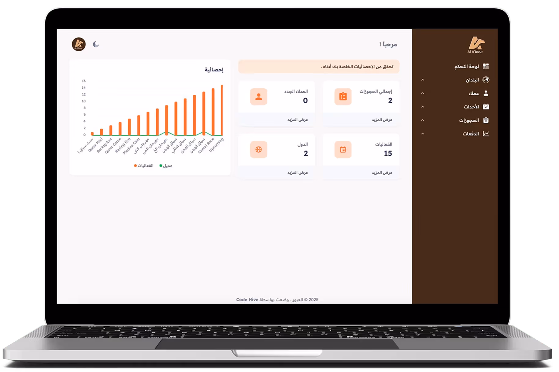 تطبيق العبور هو تطبيق متخصص لحجز الجمال، يهدف إلى تبسيط وتنظيم اللوجستيات الخاصة بمالكي الجمال خلال الفعاليات والمناسبات. يوفر التطبيق منصة سهلة الاستخدام، تتيح للمالكين تصفح سباقات الجمال القادمة حسب المدينة والدولة، والاطلاع على تفاصيل الفعاليات مثل التواريخ والمواقع والمتطلبات، وحجز وسائل النقل بكل سهولة. من خلال نظام الحجز المركزي، يلغي العبور تحديات ترتيب الرحلات، مما يضمن تجربة سلسة ومنظمة وخالية من التوتر. مع خيارات نقل موثوقة وعملية منظمة، يمكن لمالكي الجمال التركيز على الاستعداد للسباقات بينما يتكفل التطبيق بإدارة تعقيدات اللوجستيات
